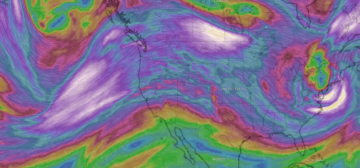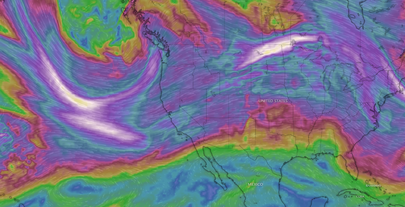 ¡Buenos dias! NNW winds of 10-15 knots were measured near Cerralvo by a couple of evening satellite passes, and all of the latest model forecasts show solid NNW background flow will continue today. A few morning high clouds should move off to the east, with a significant thermal boost expected this afternoon. Models are in excellent agreement that high pressure over the western U.S. will remain locked in place through the upcoming weekend and likely through next week as well, with ample north background flow continuing over our region (see nerd note below). Some high clouds may partially dampen our local thermal on Sunday and Monday, but otherwise we should see substantial thermal boosts each afternoon.