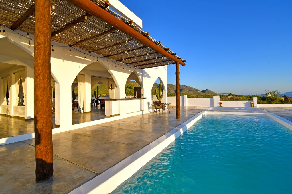 Welcome to The Moroccan Palace! Turkish inspiration and Moroccan design in this breathtaking luxury villa of timeless, magical ambiance. A one-of-a-kind gorgeous retreat nestled in the Baja desert, with a breathtaking backdrop of mountains, overlooking the Sea of Cortez offering an unparalleled lifestyle for adventure seekers, wellness enthusiasts, and those who crave serenity in paradise. Rooftop glass infinity pool & cold plunge pool. Private penthouse soaking tub surrounded by arches plus heated lap pool with massive jacuzzi on infinity-style deck. Stunningly romantic handmade antique Moroccan furniture & mirrors, custom-made oversized wooden doors, artwork, gourmet kitchens, linens, soft rugs, mood lighting, private gym. Boutique Hotel, Retreats or Private Luxury Residence.