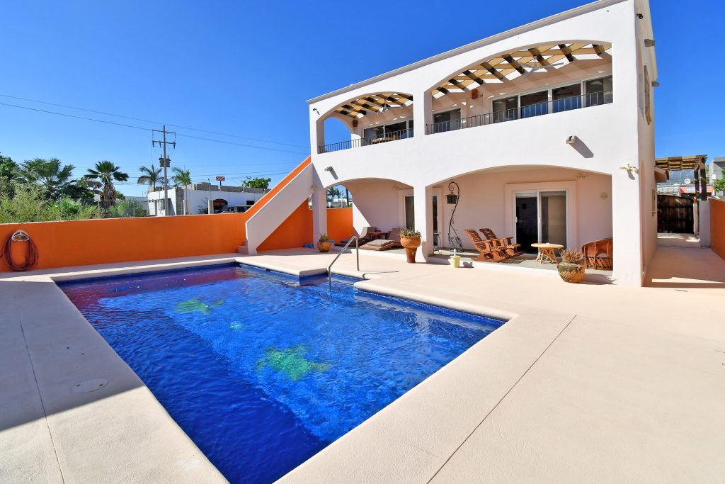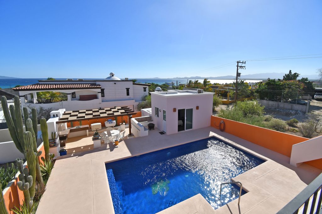 Beautiful two-level home in the heart of El Sargento, Baja California Sur—a true kitesurfing paradise. The main house features 2 spacious bedrooms and 2.5 bathrooms, providing plenty of room for family or guests. Additionally, a separate 1-bedroom, 1-bathroom ”casita” offers privacy and versatility, perfect for visitors or as a rental opportunity. This property is designed for outdoor living and entertaining, boasting a large swimming pool, shaded BBQ area, and a beautiful rooftop terrace with stunning views, perfect for enjoying the Baja sunsets. The home also includes a one-car garage and shaded carport, ensuring ample parking and storage space. Located just a short walk from the beach and centrally positioned near local stores, restaurants, shops, and essential services. MLS #24-5109 ($545,000 USD)