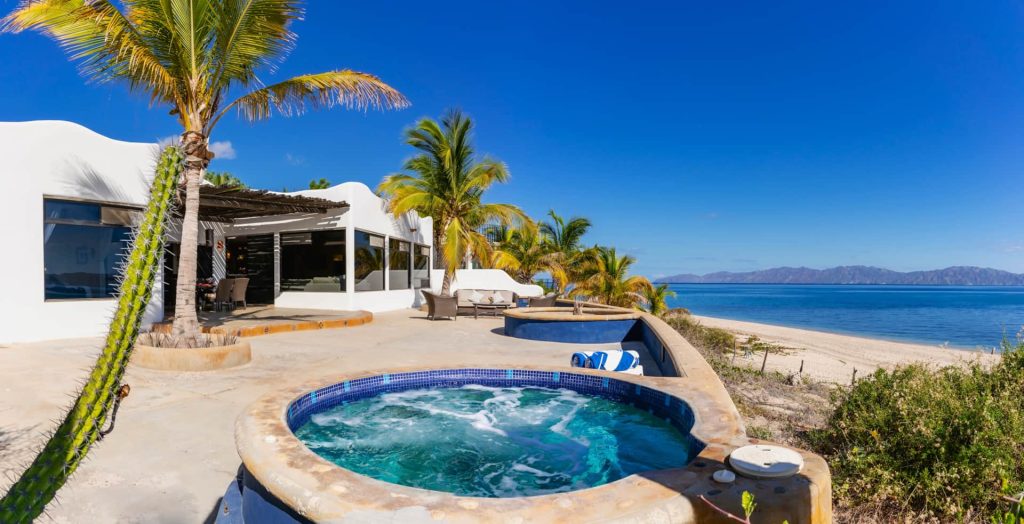 This beachfront house 2-bedroom, 2-bathroom haven boasts direct access to a pristine sandy beach, making it the perfect launching pad for your kiteboarding or windsurfing adventures. Imagine gliding across the turquoise waters with the warm Baja sun on your face and breathtaking ocean views as your backdrop. Available one bed extra (futon) in the studio for 2 more people