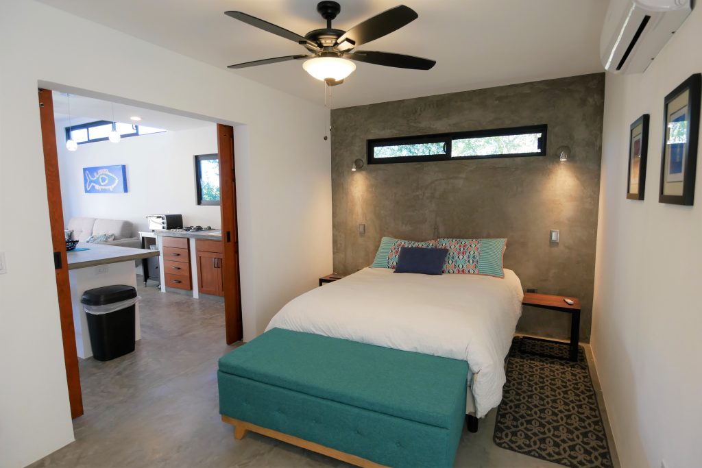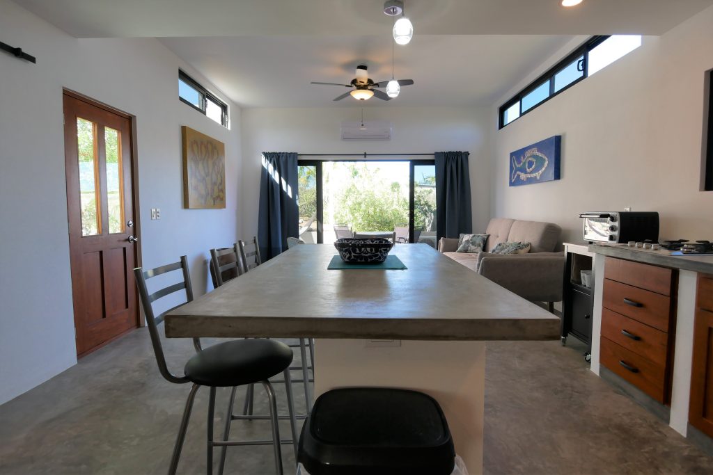 The casita is a studio concept with a spacious feel. Similar to the main casa, it is modern, tastefully appointed, has high speed Wi-Fi and is well equipped. The renter has access to the pool and palapa + charcoal grill.