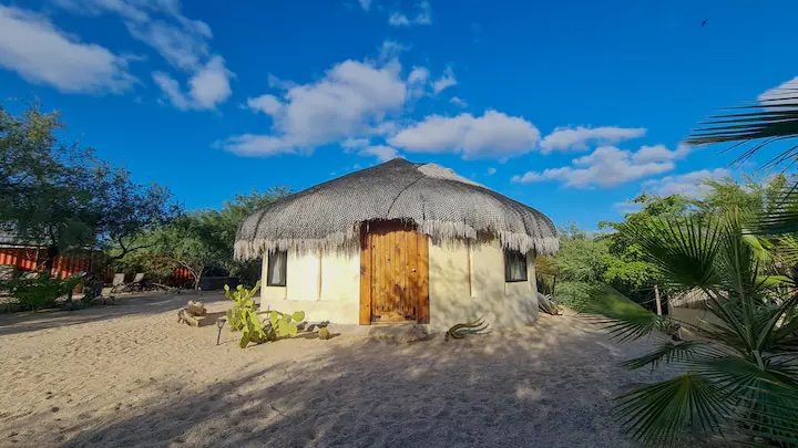 Well furnished casita steps from one of the best beaches in La Ventana. Easy beach access. As close as you can be without being beachfront. Walking distance to the bars and restaurants. Excellent wifi, gated and secure property with outdoor kitchen. Mini fridge and 43″ smart TV for Netflix, Amazon, YouTube, etc. 2 adults and 2 kids max. The palapa shares a common area with a yurt on the large, two lot property. Plenty of room with secure parking. Yurt can be rented too.