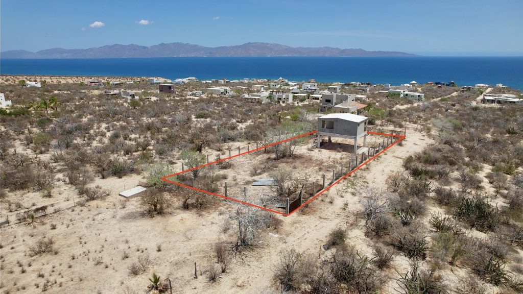 MUST SEE! Spectacular 1,305 M2 lot located at North end of El Sargento. Perched in an ideally elevated spot with the most breathtaking views of the Sea of Cortes. Located in one of El Sargento’s nicest neighborhoods close to world class mountain biking and hiking trails. Dark night sky perfect for stargazing. Quiet and peaceful area. The property has an unfinished Studio unit built at a second level height which could easily be completed at an affordable cost. This is really a unique opportunity that should not be passed up. Held in a an assumable bank trust with BanBajio.