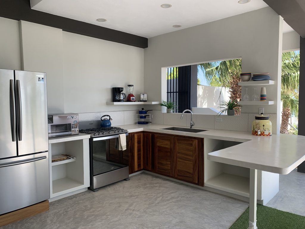 North of La Tuna Restaurant in El Sergento, about 45 foot away. The heart of Wing and Kite Foiling. Grocery store near by and many restaurants & pubs/ Happy hours. Recently built, 1,500 sqft Beach Rental Property. Walk down few steps, set up your kite or Wing Foil and off you go. Two bedrooms suites. 2 Full bath, large Full outdoor sitting area with an outdoor kitchen. This Villa can also be rented as a single suite. Share outdoor full kitchen and large yard. Pls no pets on this property. Available from November to April….