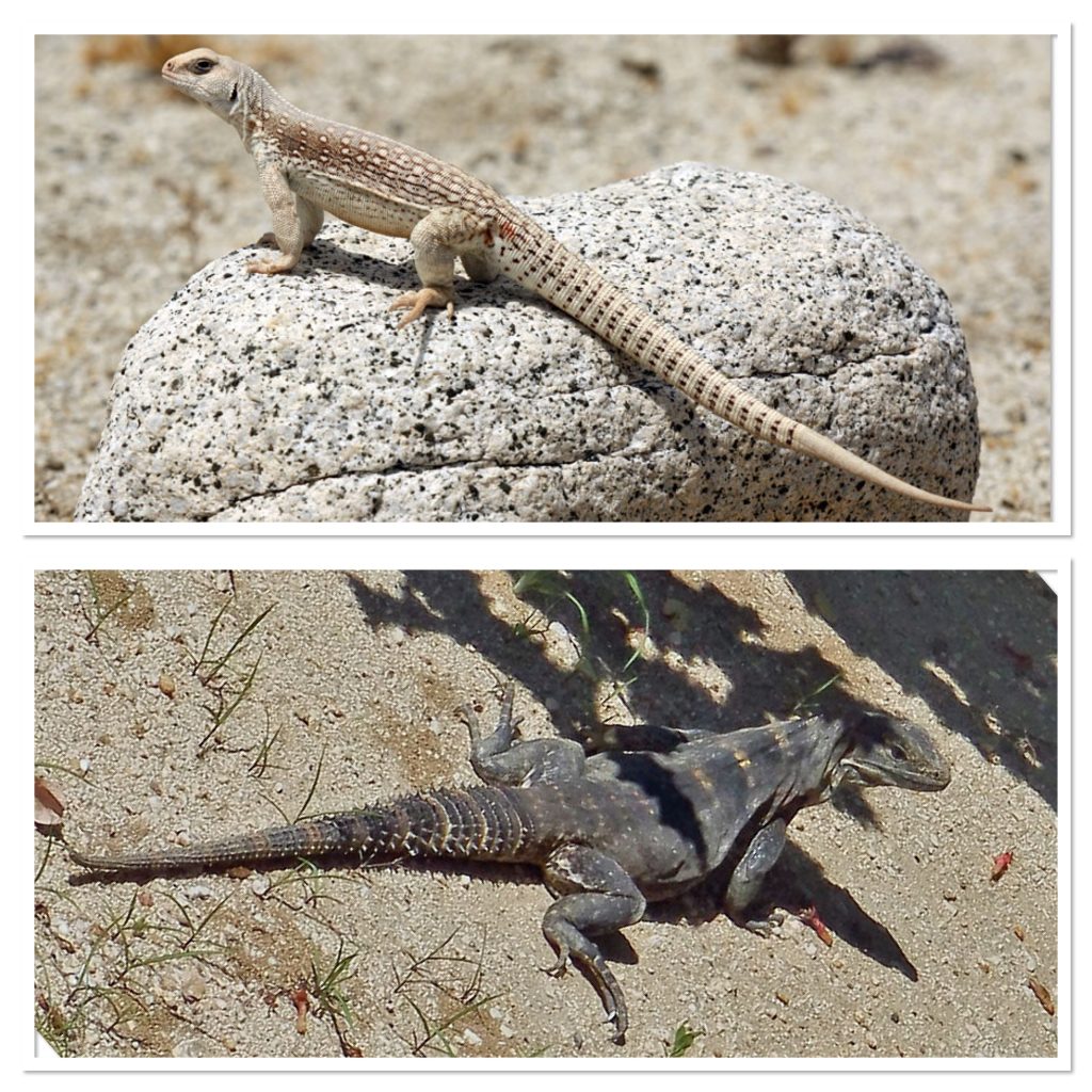The second species of local iguana is highly seasonal, and almost impossible to spot from December to March. Desert Iguanas (Dipsosaurus dorsalis) spend their winters underground, in extensive tunnel systems. These lizards do not climb trees; they prefer life on the ground. They are most often a sandy brown color, although sometimes they will appear much darker depending on the weather. They are a bit smaller than the other local iguana species. If you are here in June, you will see these lizards flash by at regular intervals. I would say they are the most common lizard in our area through the summer months. They are also ridiculously fast and quite skittish, so trying to get a good look at one can be like trying to examine a bolt of lightning.