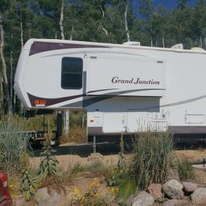 A/C & furnace working. Walk-around queen bed. 6 gallon gas hot water system. Full size fridge and freezer. In good condition. Lots of storage space. Solar panel and inverter installed for off-grid option. LED lighting.