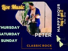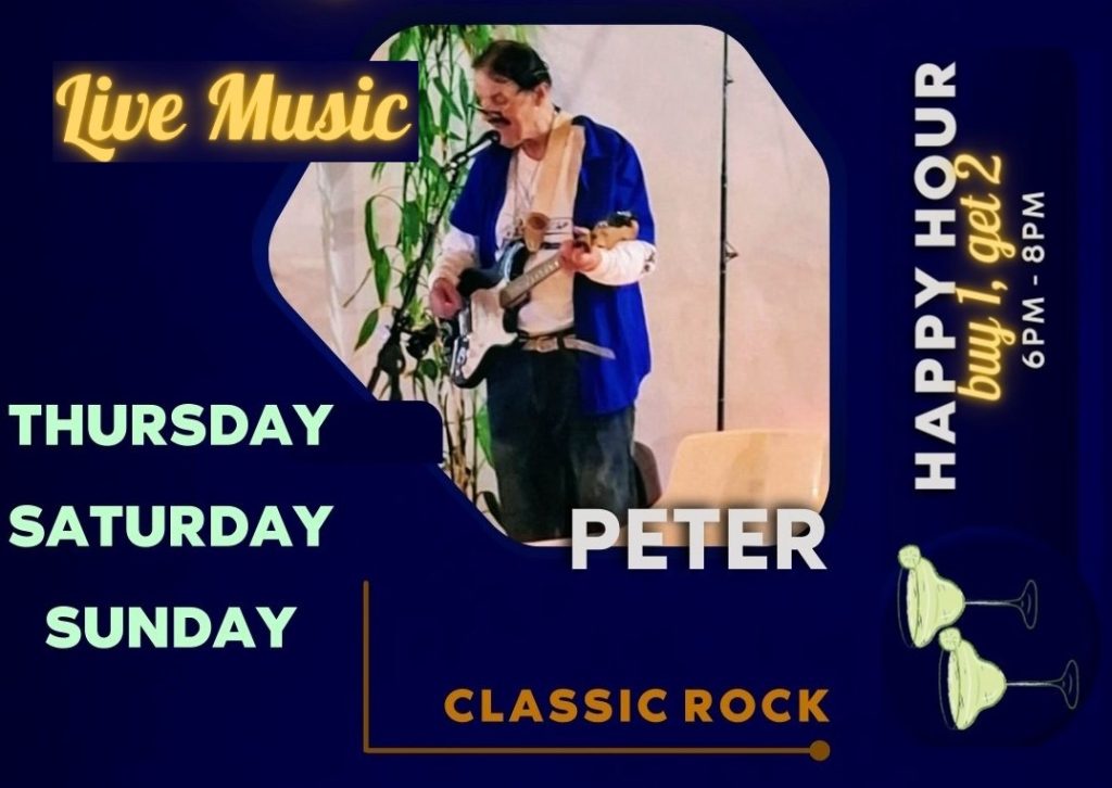 We have live music on Thursdays, Saturdays, and Sundays from 6 p.m. to 8 p.m. every week. Happy hour every day 2×1, 6pm-8pm.