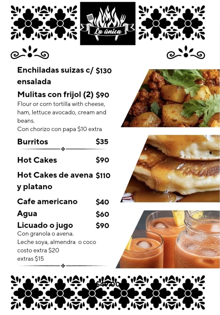 We are open every day  for Breakfast Lunch and Dinner from 8am to 9:30 pm, try our mexican food, natural fruit water, Tacos, carne asada,Rib eye, salads , quesadillas with handmade corn tortilla and more… come to join us you’ll love it.