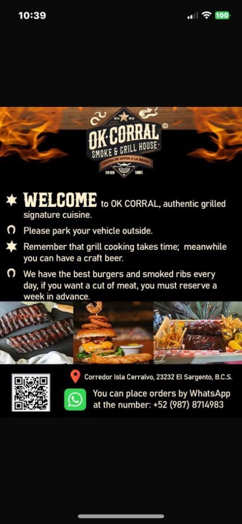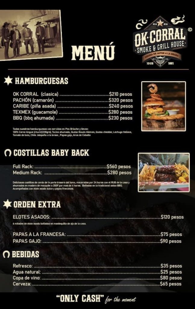 We have the best burgers & smoked ribs every day, if you want a cut of meat, you must reserve a week in advance. Place orders by WhatsApp +52 (987) 8714983
