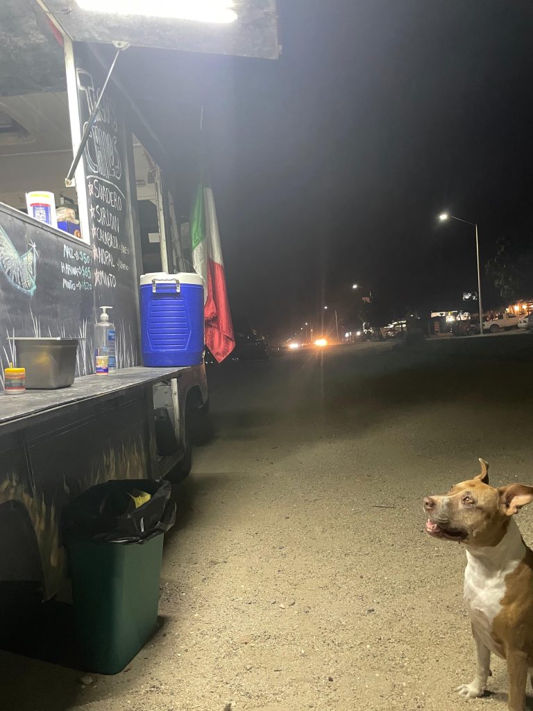 Located across the main road from Comex – open nightly – black chalkboard taco truck
