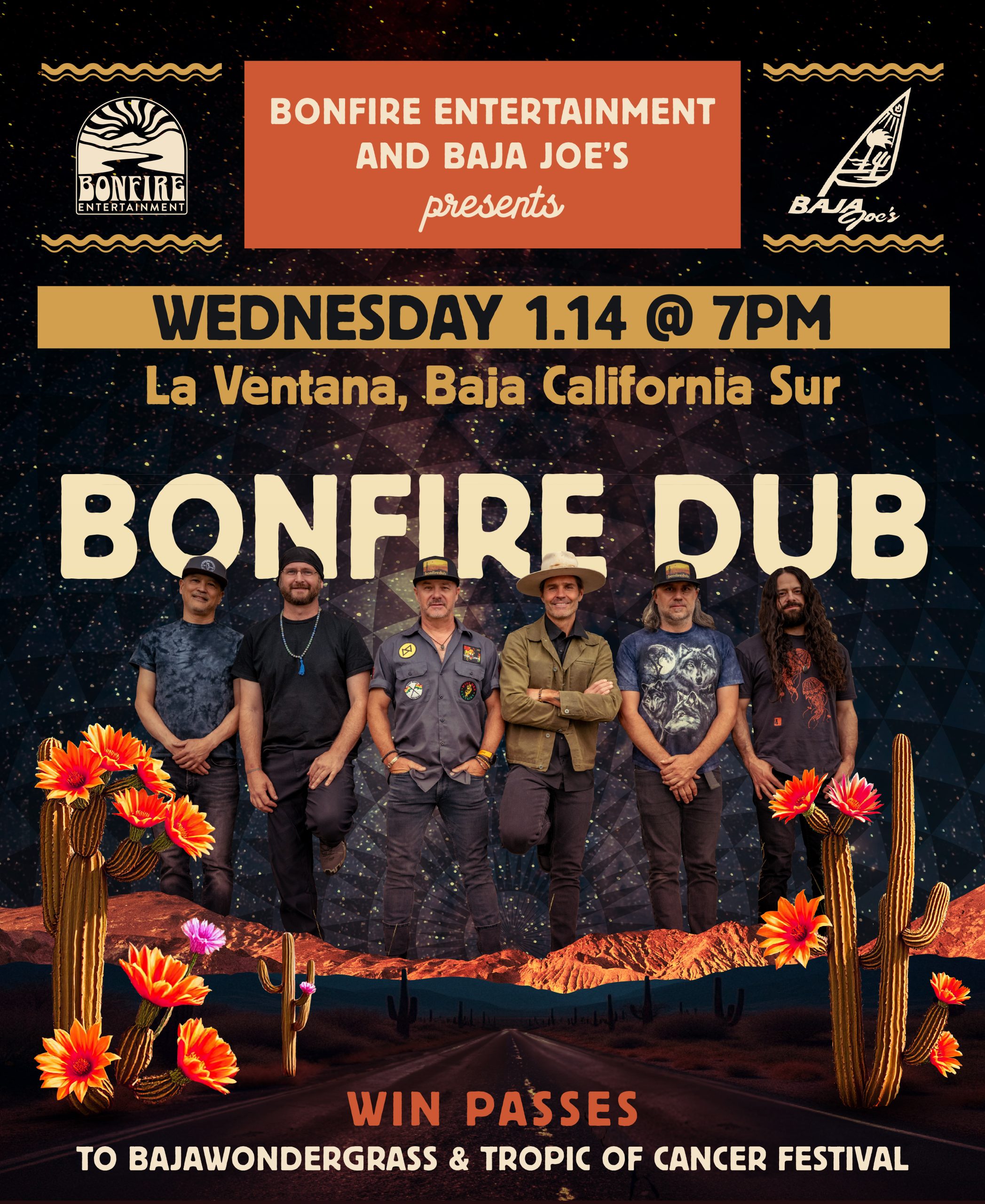 From the producers of BajaWonderGrass, Bonfire Entertainment and Baja Joe’s presents a series of jamgrass and roots vibes! Enjoy our beloved BajaGrass house band, Bonfire Dub on January 14th! Tickets on sale now.