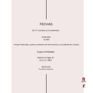 Join us for our upcoming ceramics workshop in La Ventana! We invite you to a creative experience across three sessions on October 29, 31, and November 5, from 1:00 PM to 5:00 PM, where you’ll learn to sculpt your own zoomorphic vase. The workshop includes all materials, tools, and firing of your piece.