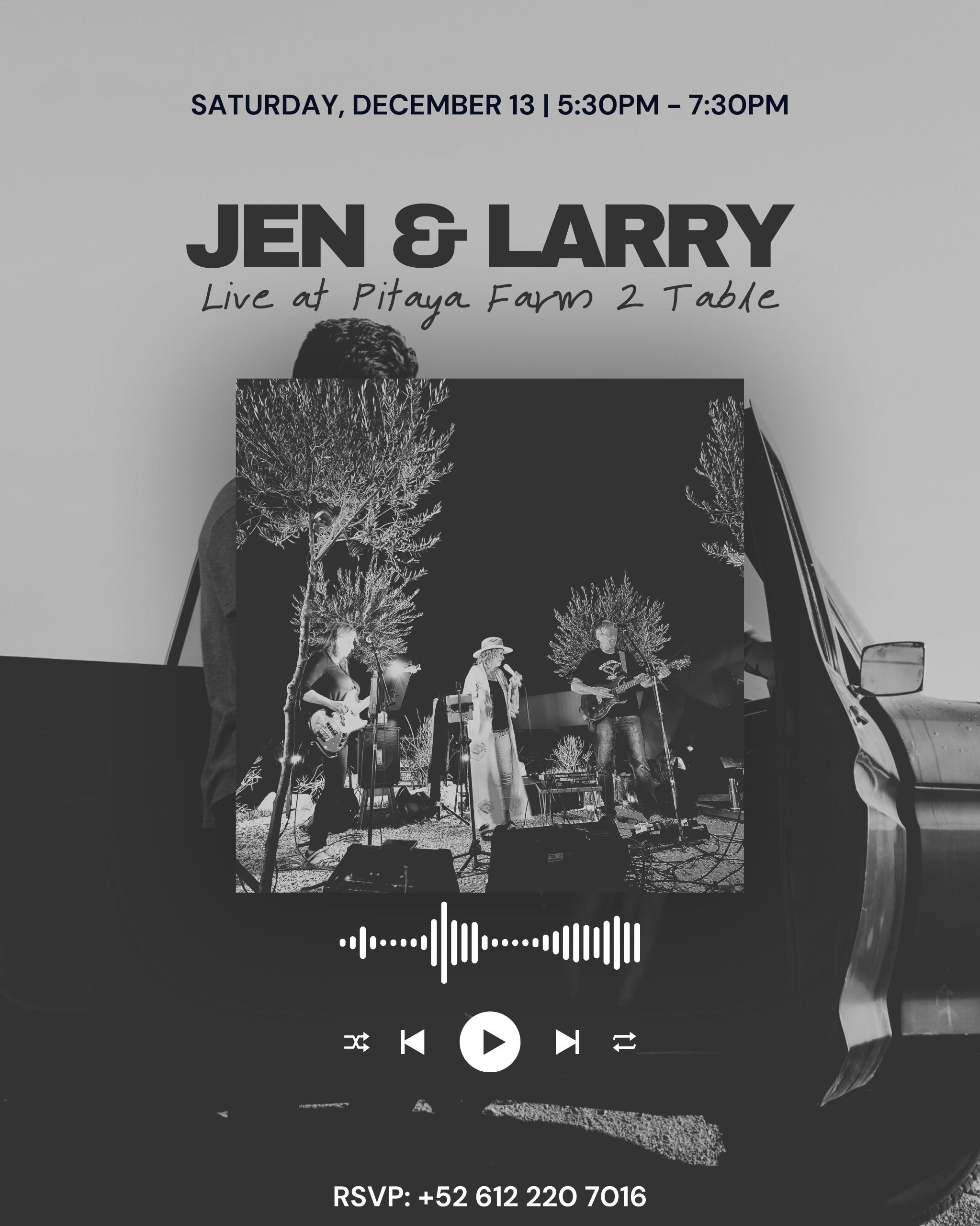 « All Events This event has passed. Jen & Larry Live December 13, 2025 @ 5:30 pm - 7:30 pm « Carol Rose Fine Art: Open Studio CUMBIA- Latin Music with Alejandro Guerrero & Aldo Cano » Good vibes, great music, unforgettable night. 5:30 pm – 7:30 pm 📲 RSVP 612 220 7016 Add to calendar Google Calendar iCalendar Outlook 365 Outlook Live Details Date: December 13, 2025 Time: 5:30 pm - 7:30 pm