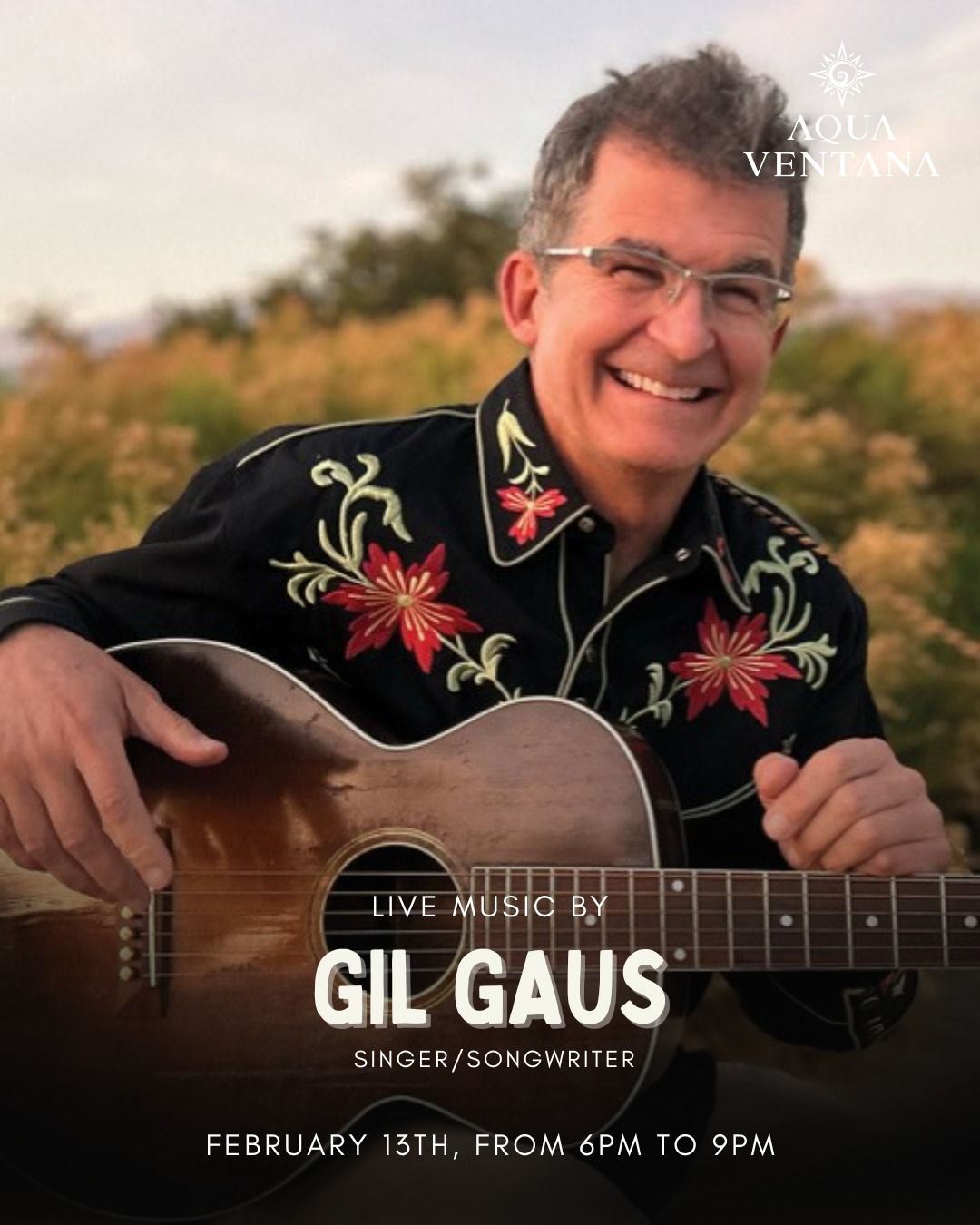 « All Events Live music by Gil Gaus Friday Feb 13 @ 6:00 pm - 9:00 pm « Flying Trapeze Beginners Class Open Mic/Jam Friday Night » A night shaped by strings and stories 🎶 Join us for an intimate live set with Gil Gaus, singer/songwriter, on February 13th from 6–9 PM. Let the music carry the evening at Aqua Ventana. Add to calendar Google Calendar iCalendar Outlook 365 Outlook Live Details Date: Friday Feb 13 Time: 6:00 pm - 9:00 pm Venue Aqua Ventana La Ventana, + Google Map