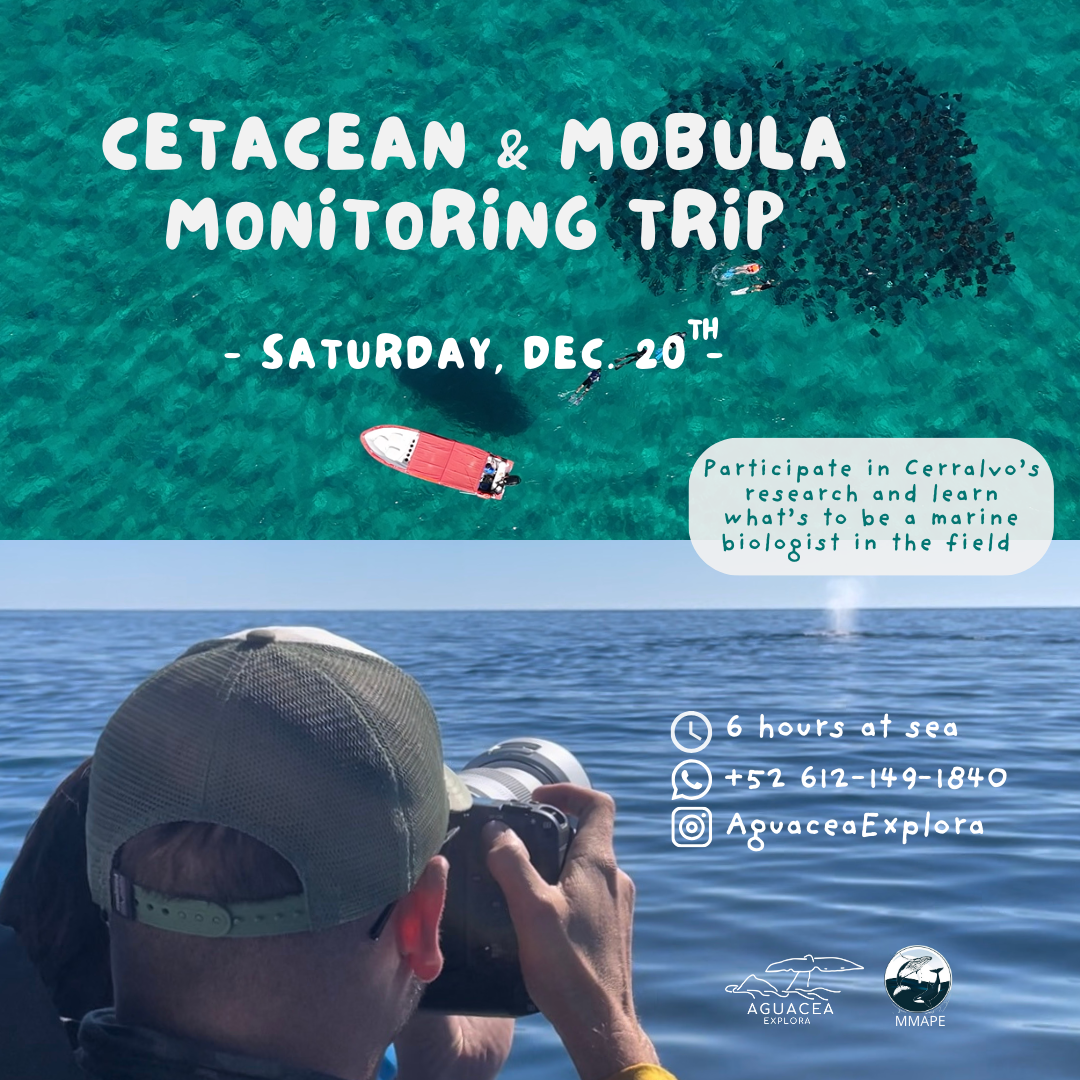 Join our upcoming scientific cetacean and mobula monitoring tour in La Ventana, organized by Aguacea Explora and the scientifics of Megafauna Marina y Pesquerias (MMAPE). On the agenda: actively searching for marine life, helping biologists with collecting valuable data for their ongoing research (photographic identification, behavior, morphometrics through dron, acoustics and more), learn from passionate people from the sea & marvel at beautiful wild encounters!