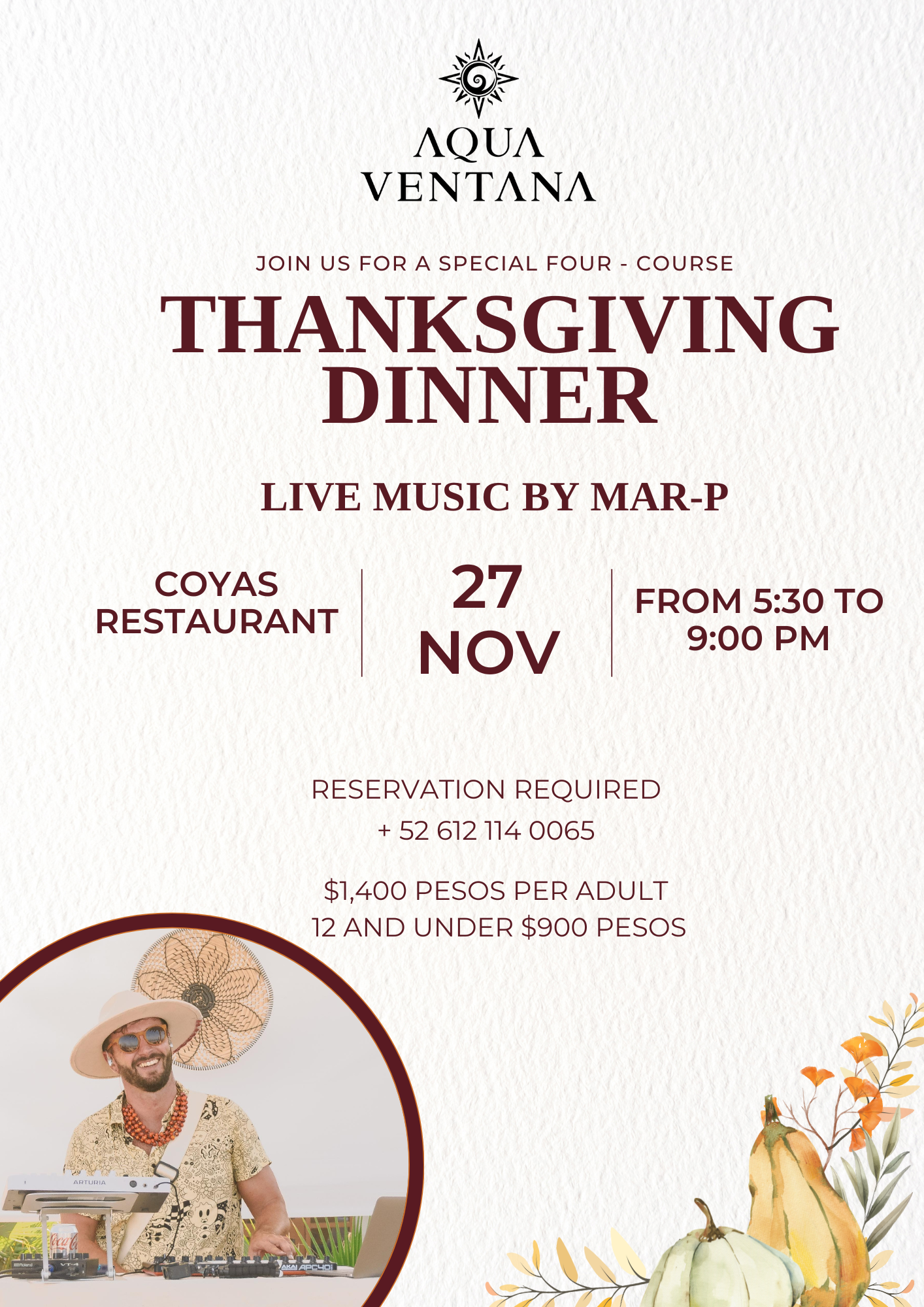 Enjoy the evening with live music by Mar-P in the beautiful setting of Aqua Ventana.