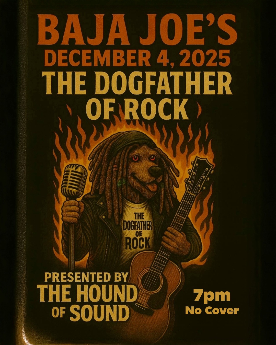 The Dogfather of Rock – Produced by the Hound of Sound- Live Music Thursday, December 4th 7pm- No cover. The Dogfather is back at Baja Joe’s every other Thursday!