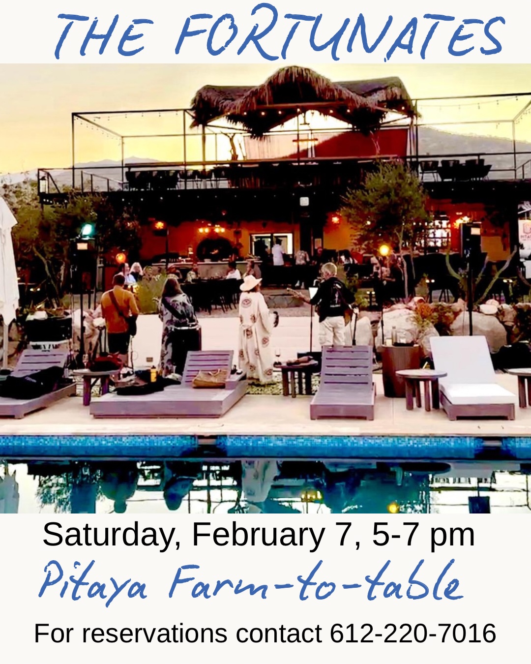 « All Events The Fortunates Live Saturday Feb 7 @ 5:00 pm - 7:00 pm « Yoga/Pilates (Donation Based) Live Classic Rock with Peter » Pitaya Farm-to-table For reservations contact 612-220-7016 Add to calendar Google Calendar iCalendar Outlook 365 Outlook Live Details Date: Saturday Feb 7 Time: 5:00 pm - 7:00 pm Venue Pitaya Restaurant