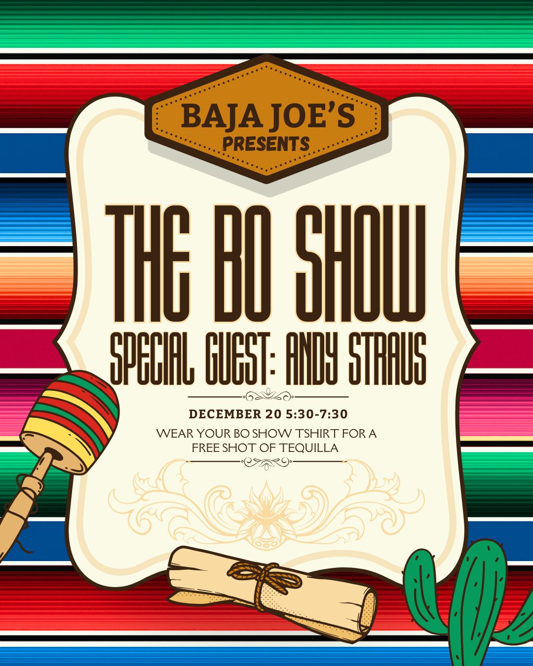 Wear your Bo Show T shirt for a free tequila shot!
