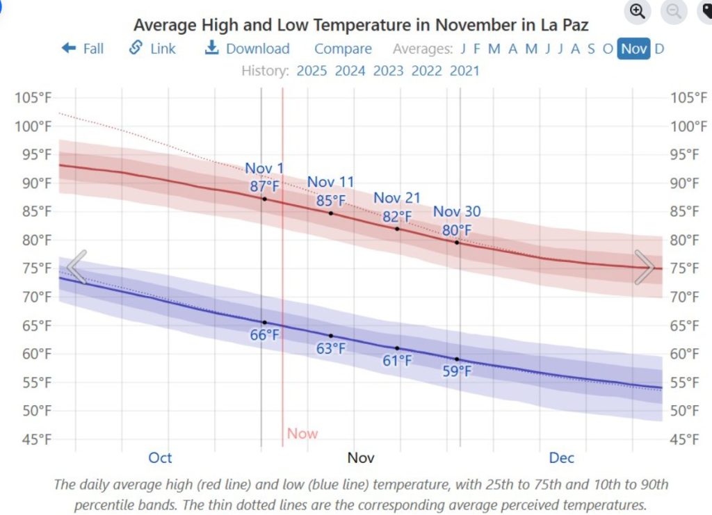 ¡Buenos dias! Well…that was weird. The wind gauge at the campground showed winds climbed steadily through the morning and reached an early peak of 17 mph with gusts to 25 mph around noon, then the wind began a slow decline to around 14 mph at 1:30 pm…right about when the thermal should have been peaking. A late-morning satellite pass measured solid 15 knot NNW background flow around 10:30 am, and a satellite pass around midnight measured ample NW background flow of 10-15 knots just east of Cerralvo, so it’ll remain a mystery (at least to me). Model forecasts are in good agreement that the background flow today will fall to very near the lower limit that usually is needed to fully trigger our local wind machine. I’ll be optimistic since a couple of the more reliable models do show just enough to get at least a partial thermal response this afternoon. Very similar conditions are forecast for Saturday, so it’ll be another day to be ready just in case. Models are in good agreement that a ridge of high pressure will build over the Great Basin of the U.S. on Sunday and send a new surge of north flow into BCS. Surface high pressure is then forecast to remain in place near the 4-corners region of the U.S. on Monday, then slowly weaken Tuesday into Wednesday. For now, it looks like there will still be just enough north background flow on Tuesday and Wednesday to combine with abundant sunshine and continue the windy streak. At this point a couple of the long-range models indicate that Thursday will be marginal…stay tuned.