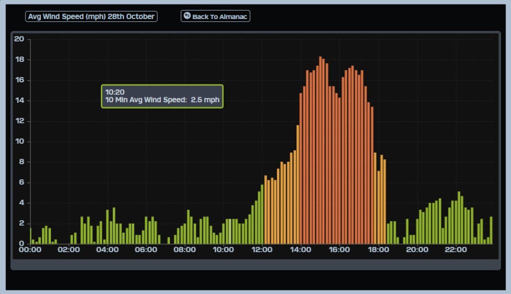 ¡Buenos dias! The wind gauge at the campground showed an unusual profile with two peaks yesterday…one from around 2-3:30, then another late one from around 4:30-5:30 (see graph below). Satellite passes yesterday afternoon indicated that the second peak was a new surge of north background flow, however it arrived a bit too late to fully team up with our local thermal, so winds only peaked at around 18 mph instead of the 20-24 mph I expected. A satellite pass last evening measured 10 knot NW winds over much of the southern Sea of Cortez, and forecast models show similar backgroud flow will continue today. With another sunny day ahead we will likely see a substantial thermal boost, and with north background flow already in place, we should see a more normal wind profile, with winds increasing by around midday. A sprawling ridge of high pressure covering much of the western U.S. this morning will weaken quickly tonight, leaving a weak surface pressure gradient with only light onshore flow expected Thursday and Friday. Forecast models are in fairly good agreement that Canadian high pressure will work its way southeastward and bring a new pulse of north flow to BCS…possibly as early as Saturday afternoon. Sunday looks to be the windiest day of the upcoming weekend, and long-range model forecast show just enough north background flow may last into Monday. At this point it looks like Tuesday will be another light wind day as the surface pressure gradient over our region becomes very weak.