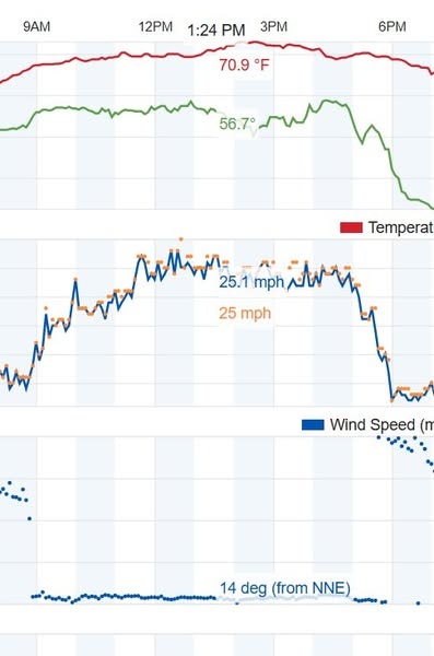 - Tuesday…Mostly sunny. North wind 16-20 mph.