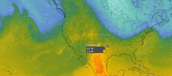 Nerd Note: As I mentioned several days ago, long-range global models have been forecasting a major shift in the middle and upper level weather pattern, with much cooler air forecast to finally move into BCS around the middle of November. These forecasts have held, and we should see a noticable cool down here Saturday night into Sunday. The graphics below show the air temperature at around 5000 ft today, with abnormally warm air over much of the western U.S. and Baja Peninsula as a persistent ridge of high pressure remains in place. Notice the trough off the west coast of the U.S., with much cooler air shown in blue. Fast-forward to Sunday and the trough has moved eastward over the Baja Peninsula and temperatures aloft have dropped substantially.