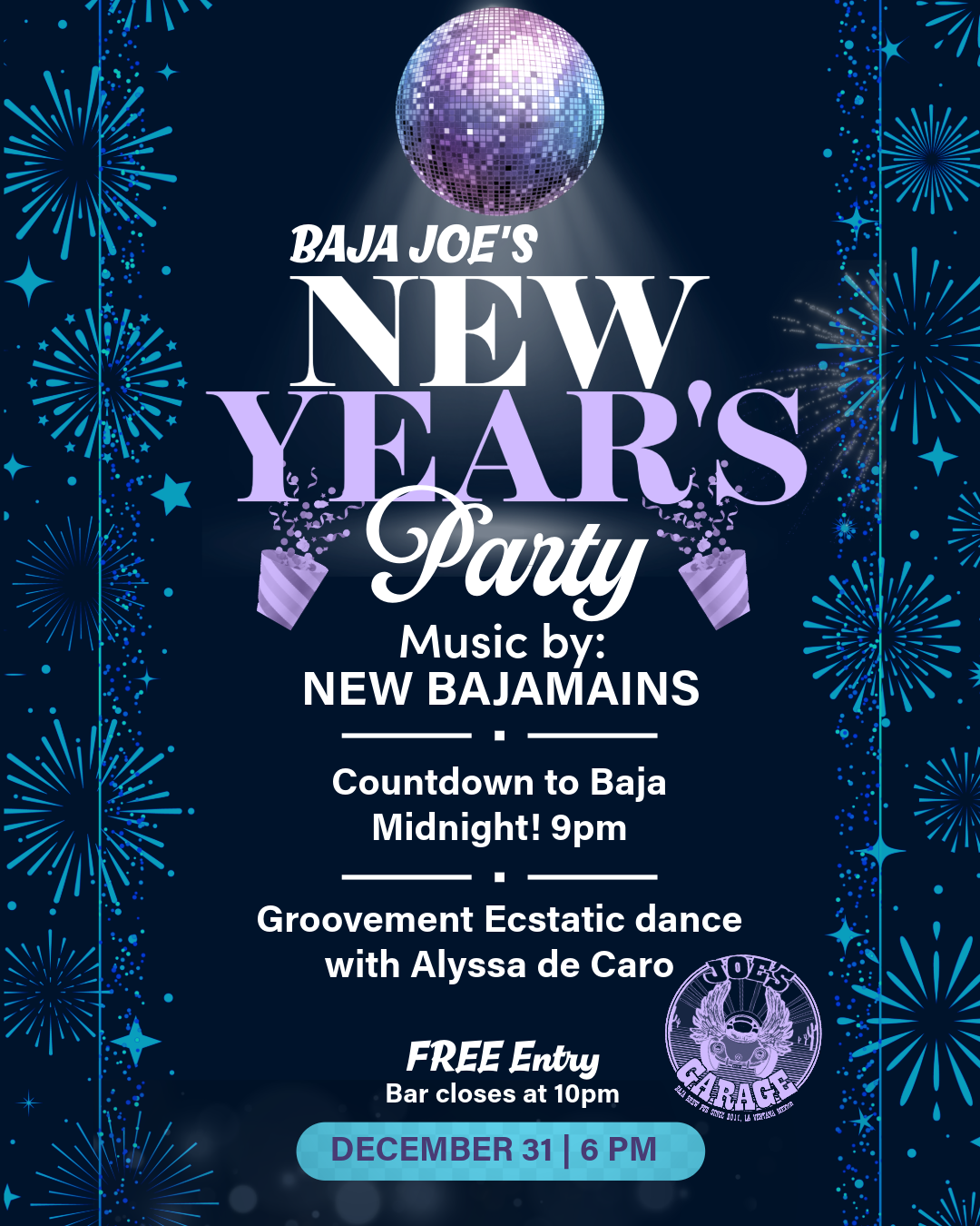 Baja Joe's La VentanaRing in the New Year at Baja Joe’s for a fun, all-ages New Year’s Eve celebration before the late-night Debauchery begins 🍾