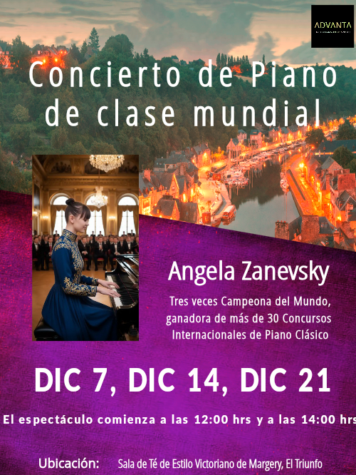 Margery's Victorian Style Tea RoomWeekend getaway to El Triunfo, Bajás Acropolis, a new international center for the performing arts and entertainment. Take a scenic pleasure drive to a historic El Triunfo. Enjoy a world class Piano Concert by a Forbes featured Angela Zanevsky, the Laureate of over 30 International Competitions in Classical Piano, the First prize winner of San Read More